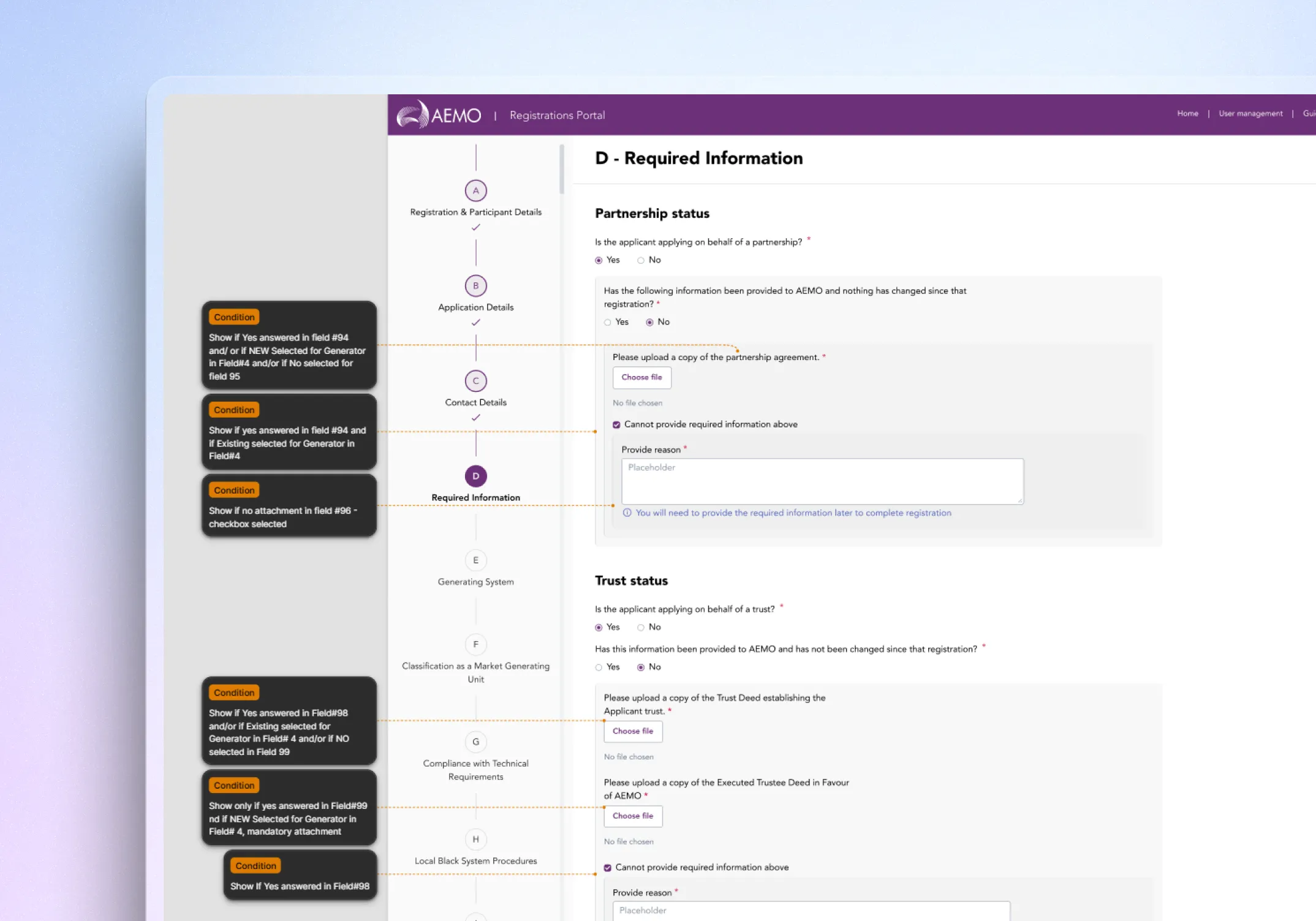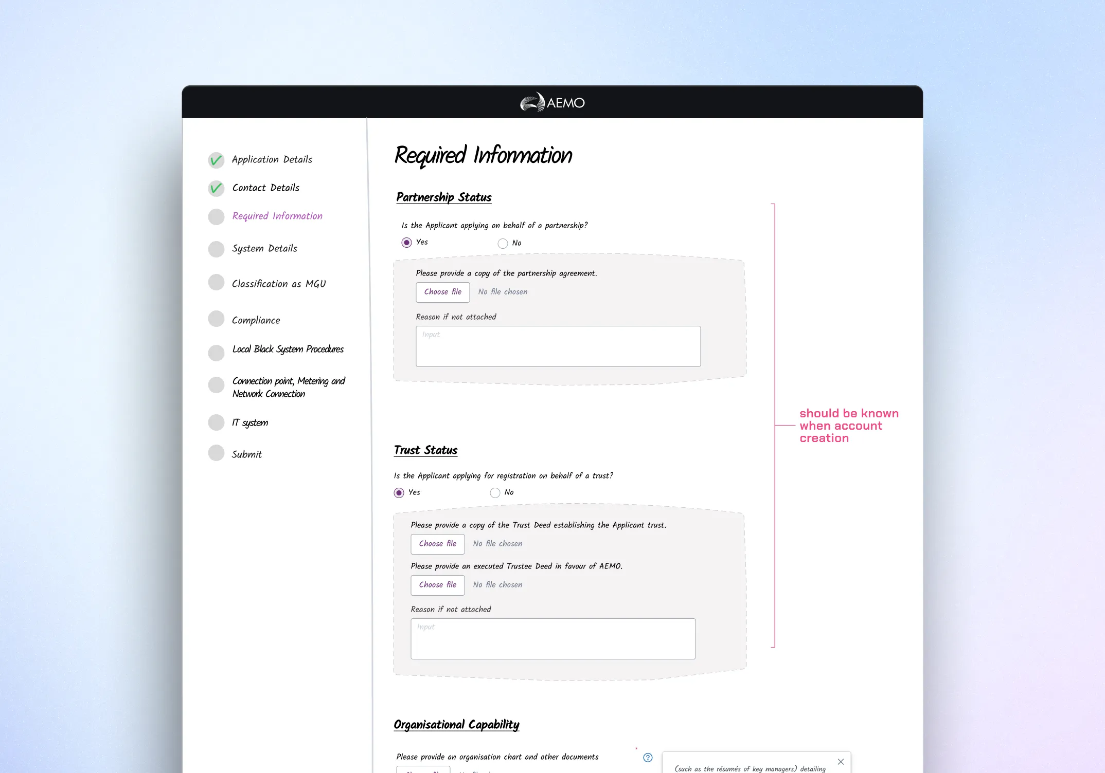 Audited the current-state experience: applicants downloaded PDFs, completed them offline, then emailed AEMO for manual review and follow-up.